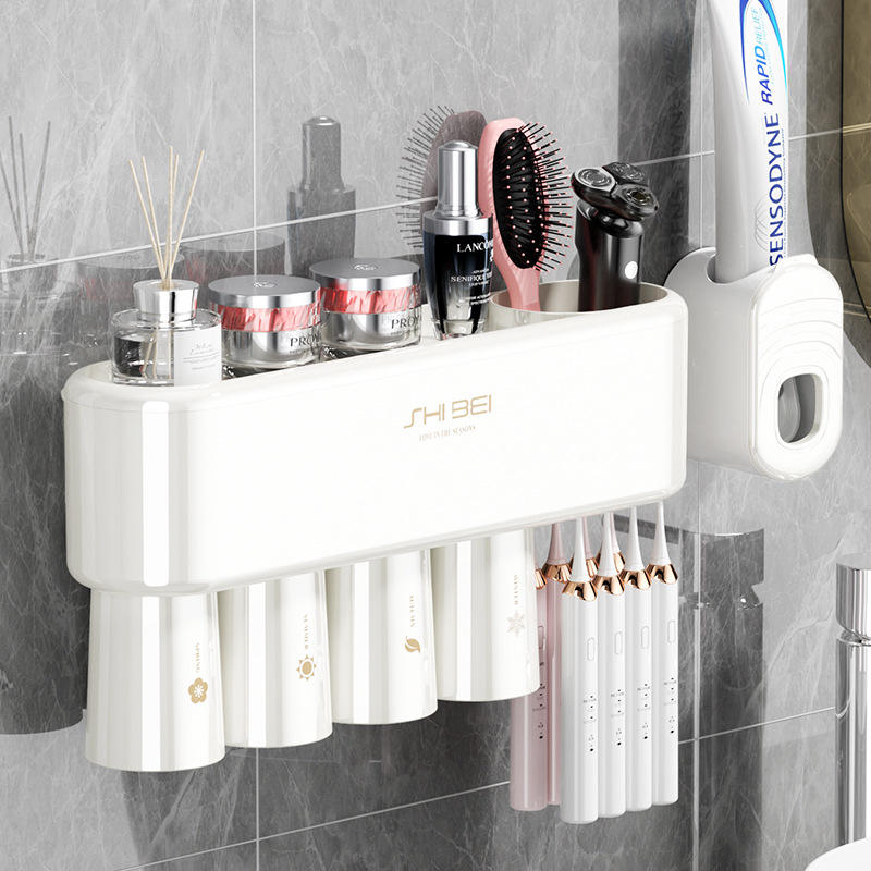 ที่วางแปรงสีฟันติดผนังชิเป่ยพร้อมถ้วยเก็บน้ำสำหรับห้องน้ำดีไซน์เรียบง่ายทำความสะอาดง่าย