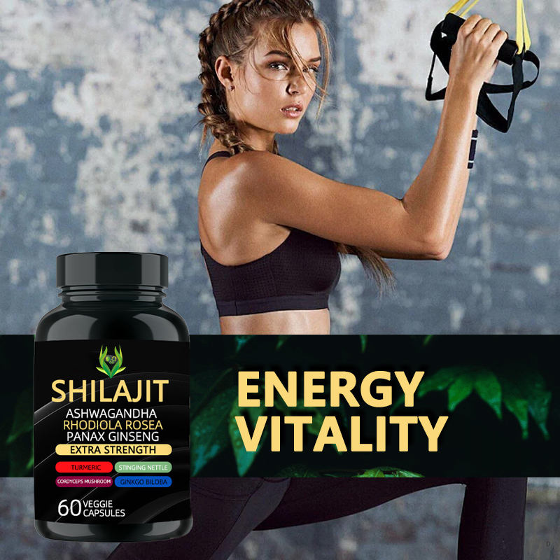 Shilajit, Ashwagandha, Rhodiola Rosea, Panax Ginseng, Turmeric, Stinging Nettle, Cordyceps Mushroom, Ginkgo Biloba