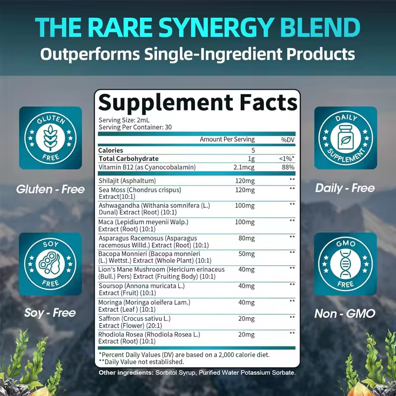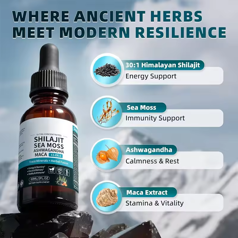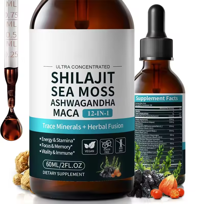 ชิลลาจิต น้ำยาชนิดหยด สารสกัดจากรากมาคา 12-in-1 คอมเพล็กซ์-อาหารเสริมสำหรับผู้ชาย ผู้หญิง เพิ่มพลังงาน ต้านอนุมูลอิสระ เสริมภูมิคุ้มกัน 60 มล./2 ออนซ์