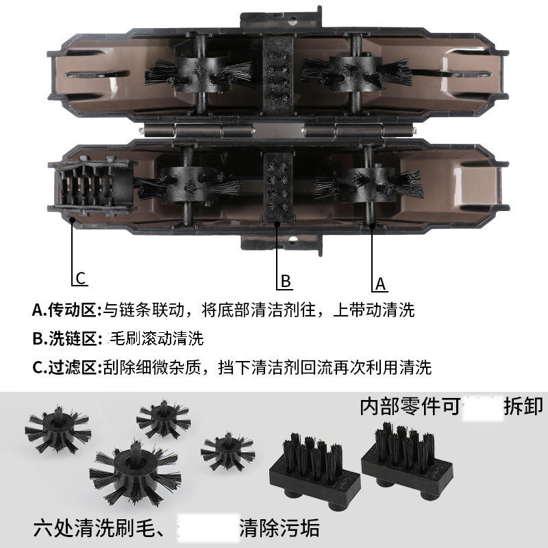 Black chain cleaner with large and small brushes