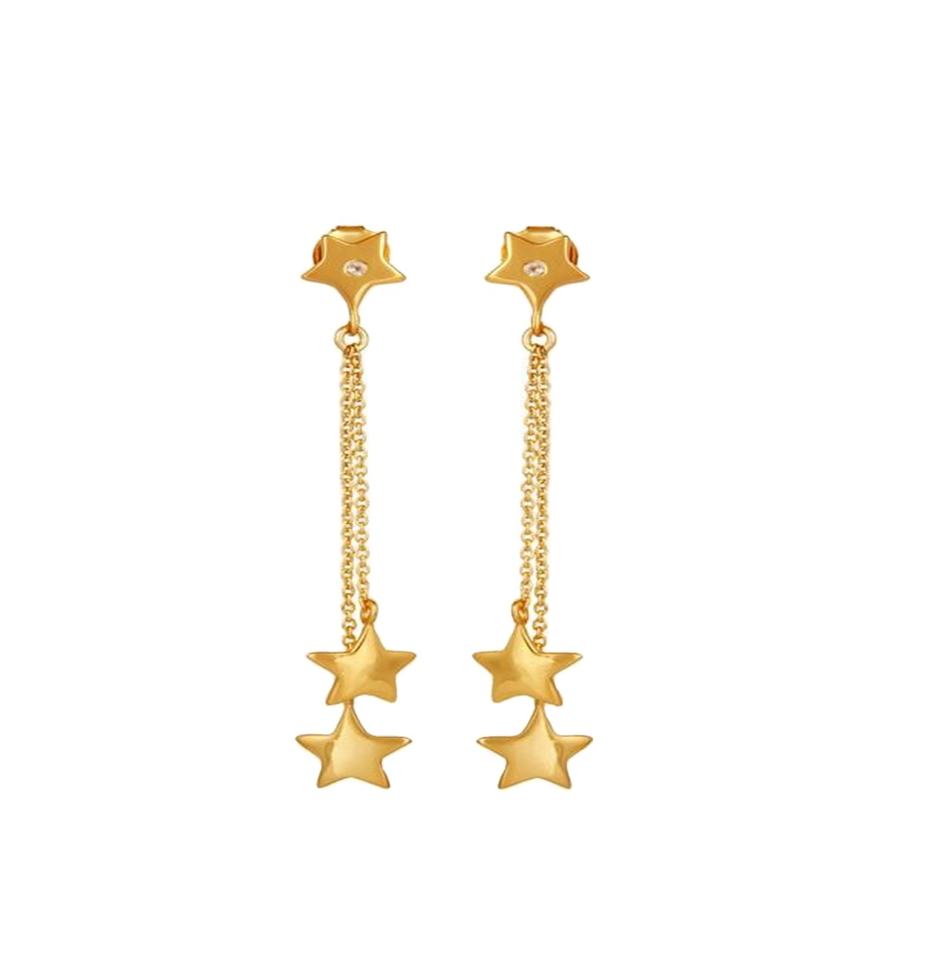 ต่างหูรูปดาวระยิบระยับเครื่องประดับทองเหลืองชุบทองขายดีที่สุดพร้อมโซ่และดาว