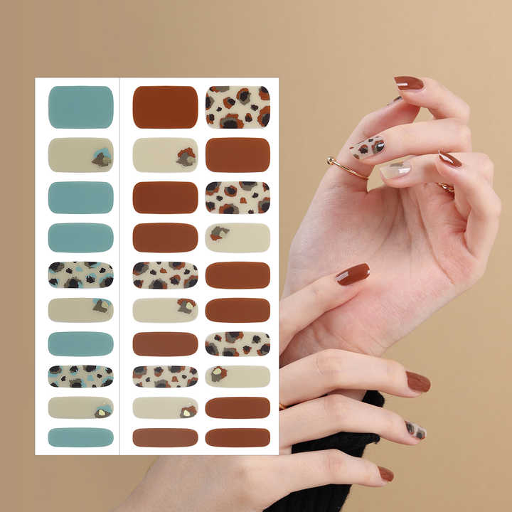 Shineb แถบเล็บเจล3D คุณภาพสูงใช้งานง่ายสติ๊กเกอร์ติดเล็บลายเสือดาวสีน้ำตาลมินท์เกาหลีสำหรับร้านเสริมสวย