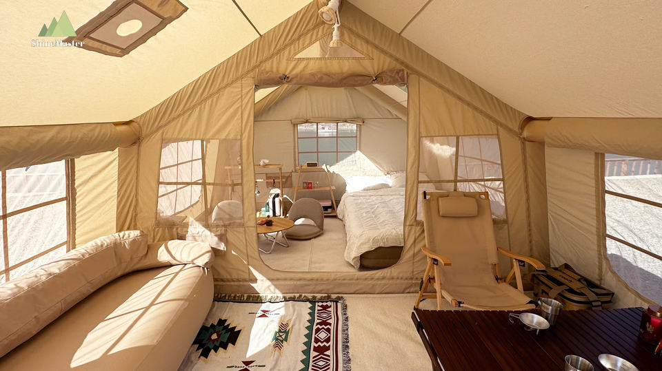 Shinemaster เต็นท์สูบลมกันน้ำกลางแจ้งขนาดใหญ่ออกแบบได้ตามที่ต้องการสำหรับการตั้งแคมป์บ้านเสาลมสำหรับงานหนัก