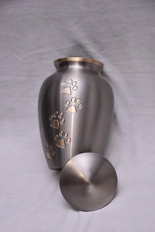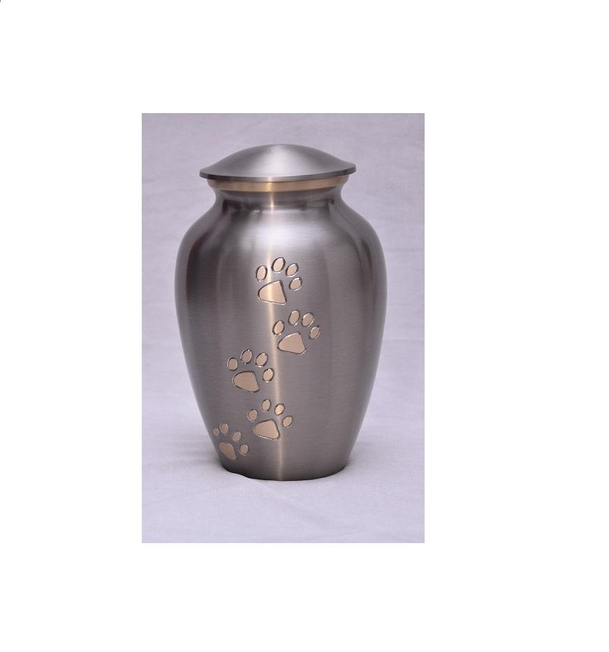 Shining Anthracite Grey with Golden Pet Paw Urn Brassworld India's Premium Funeral Supplies
