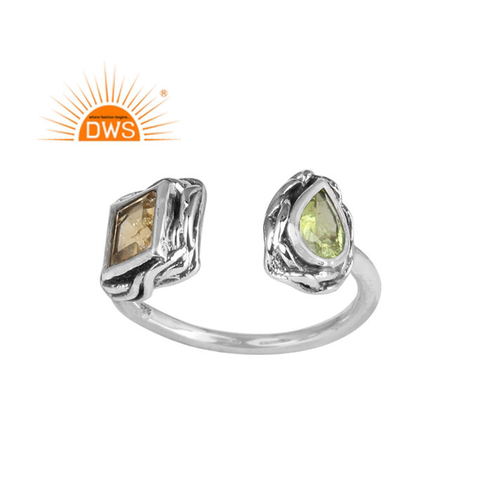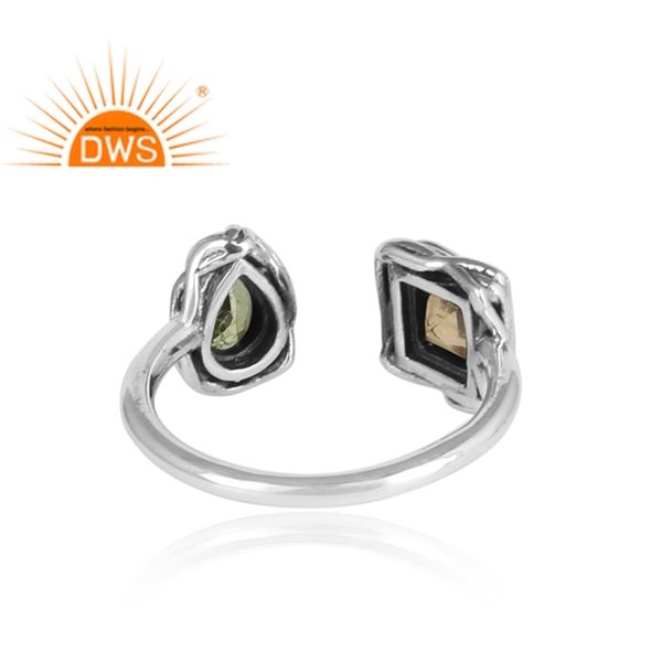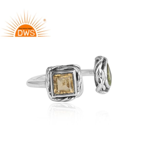 แหวนพลอยซิทรินและเพอริดอทส่องประกาย แหวนเงินแท้ดีไซน์โบราณ ผลิตโดยผู้ผลิตเครื่องประดับ คอลเลคชั่นวินเทจ