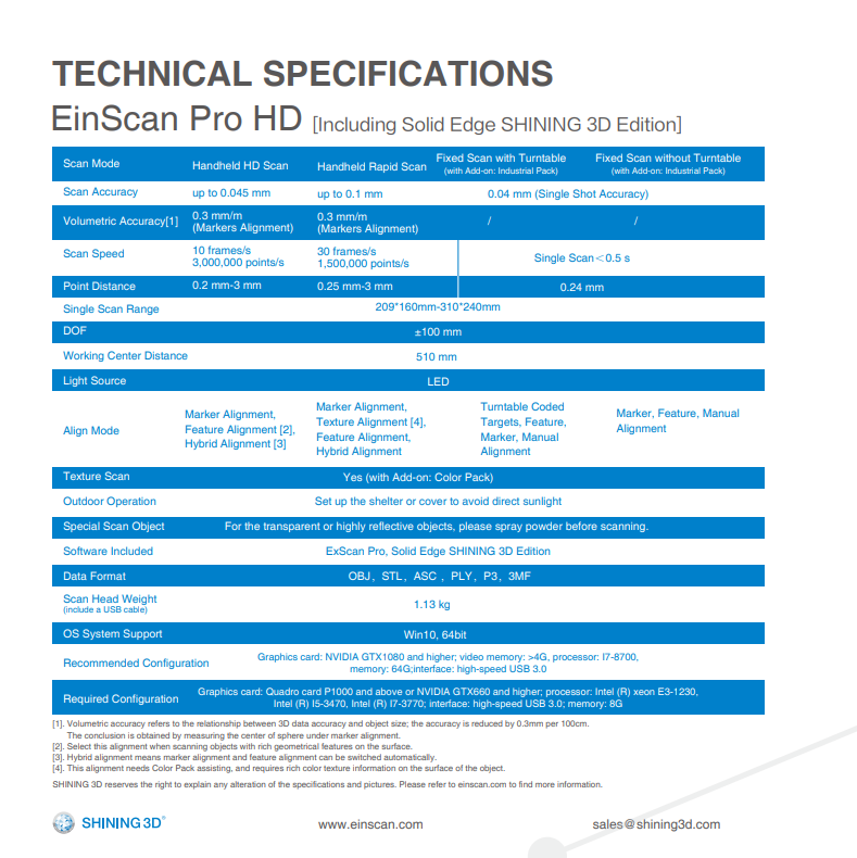 เครื่องสแกน 3 มิติ Shining Einscan Pro HD แบบพกพา สำหรับเครื่องพิมพ์ 3 มิติ