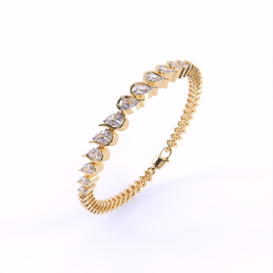 สร้อยข้อมือเพชรส่องแสงสีทองและกำไลข้อมือสำหรับเด็กผู้หญิงสร้อยข้อมือเพชรที่ปลูกในห้องปฏิบัติการพร้อมกลีบดอกใบรูปลูกแพร์สร้อยข้อมือเพชร