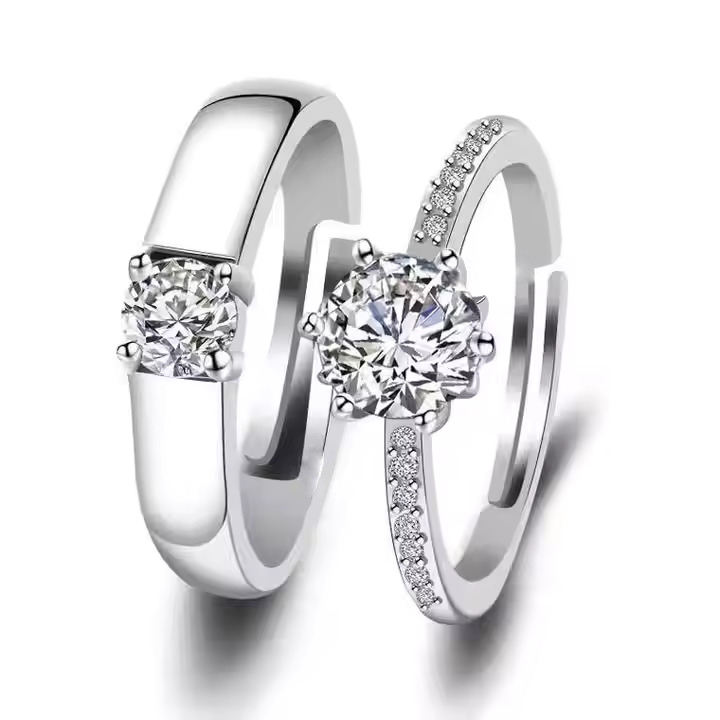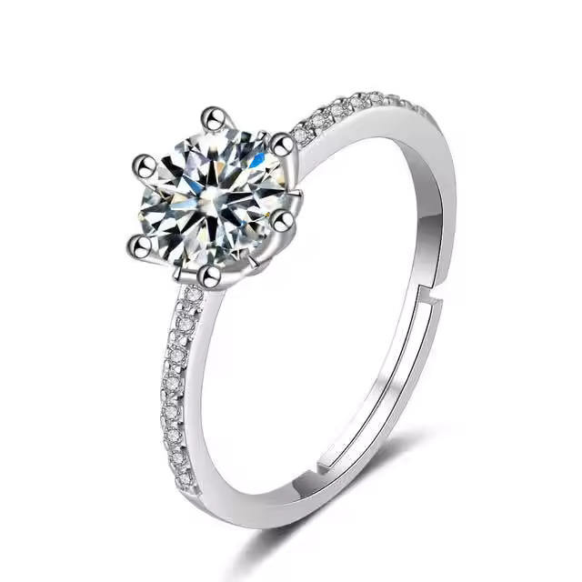แหวนเพชรส่องแสง VVS1โตเต็มวัยทำจากทองคำวงแหวนปรับได้ครึ่งรอบตัดสีขาวทองของขวัญวันวาเลนไทน์ที่น่ารัก-DS0068