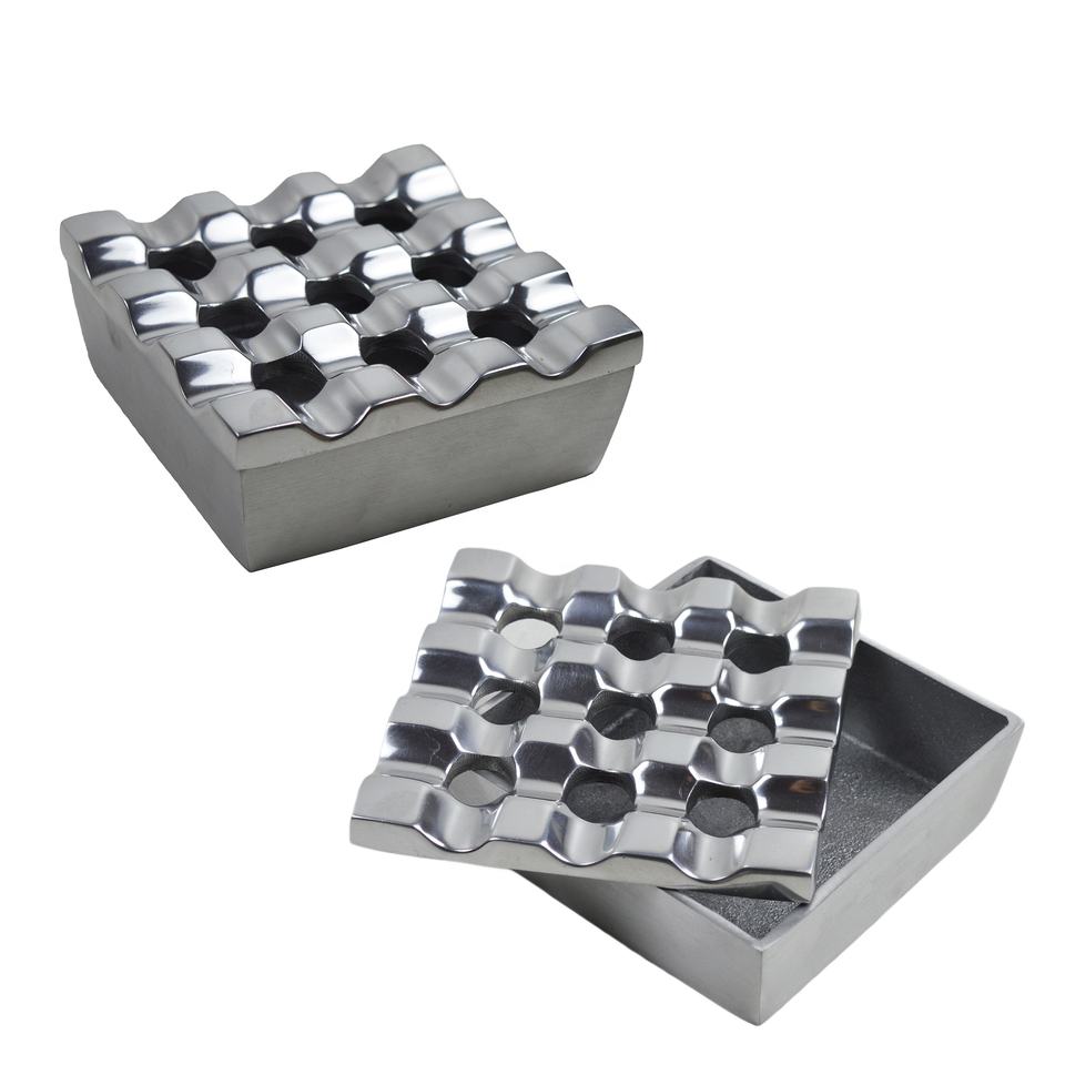 ถาดสูบบุหรี่อลูมิเนียมสำหรับห้องประชุมคณะกรรมการดีไซน์คลาสสิกถาดโลหะครึ่งไข่ขัดเงาแบบสมบูรณ์