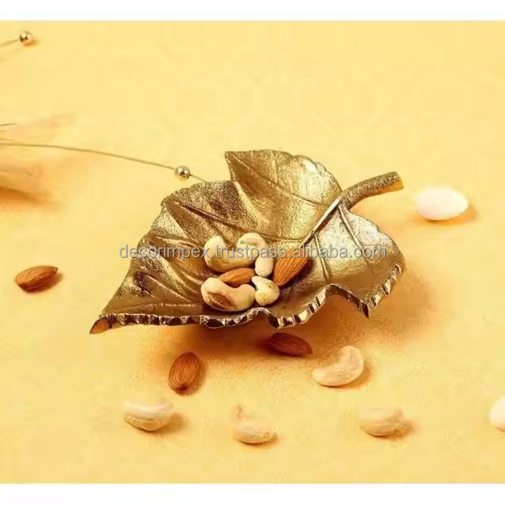 Shiny Aluminum Cast Leaf-Shaped Serving Bowl Kitchen Accessories Table Top Decorative Bowl For Weddings And Parties