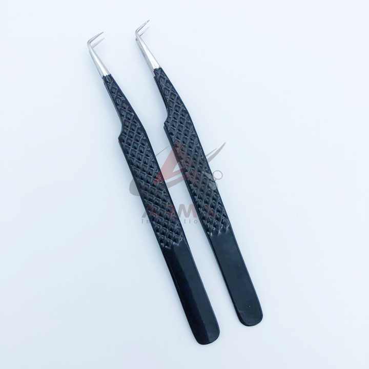 แหนบต่อขนตา90องศาสีดำเงางามแบบแยกขนตางแหลมทำจากสเตนเลสอย่างยั่งยืนทดสอบด้วยมือฉลากส่วนตัว