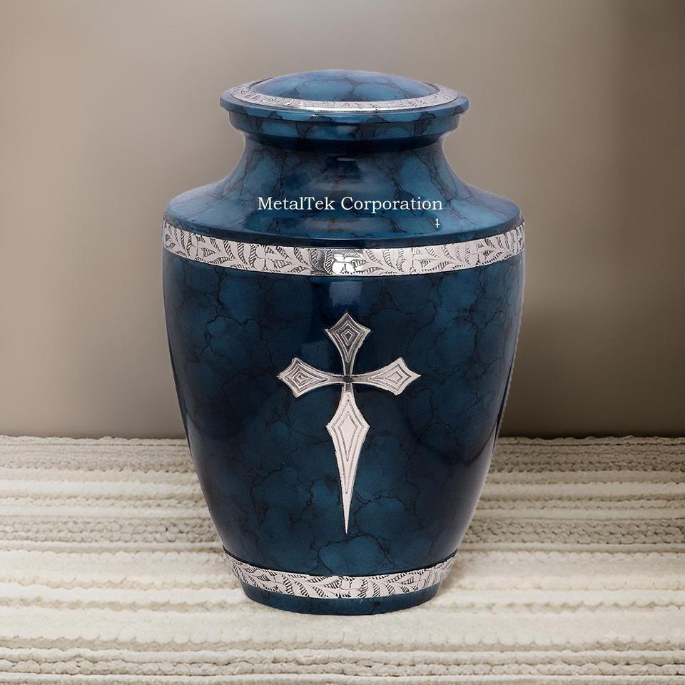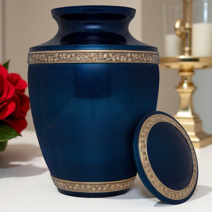 Shiny Blue Trieste Brass Cremation Urn For Ashes Wholesale Price Low Price Funeral Supplies Memorial Ashes Metal Jar Burial Urns