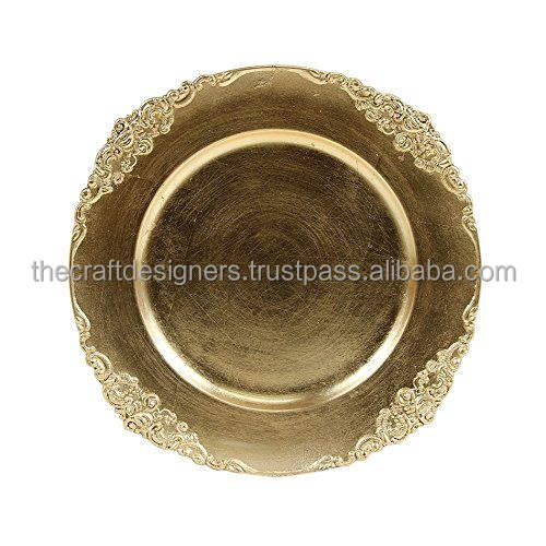 แผ่นที่ชาร์จโลหะสีทองเงางามสำหรับตกแต่งโต๊ะปาร์ตี้เพิ่มสัมผัสโลหะอันหรูหราให้การตกแต่งงานเลี้ยงอาหารค่ำ
