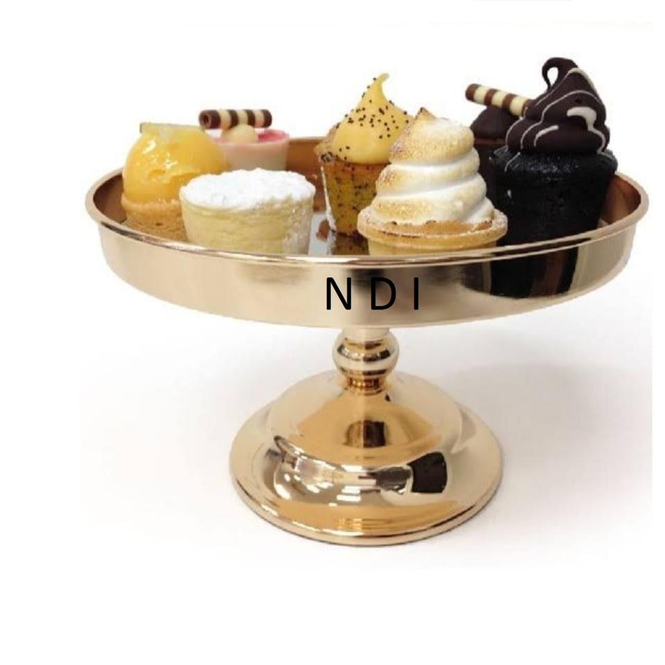 ที่วางเค้กทรงกลมเคลือบทองแวววาวที่วางเค้กโลหะเคลือบเงาสำหรับงานเลี้ยงวันเกิดหรืองานเลี้ยงคริสต์มาส