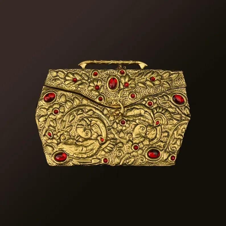 ชื่อสินค้า:กระเป๋าโลหะทรงกลมพร้อมตัวล็อคแบบบิดทอง