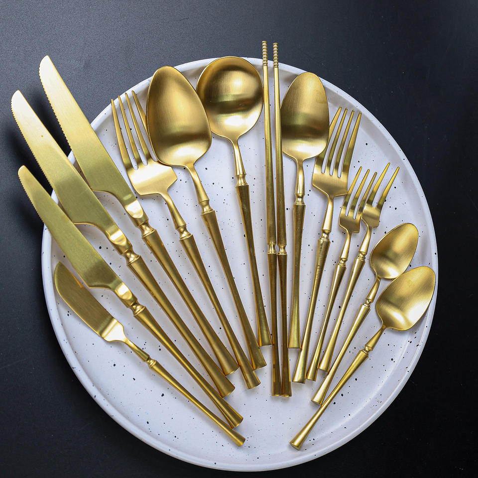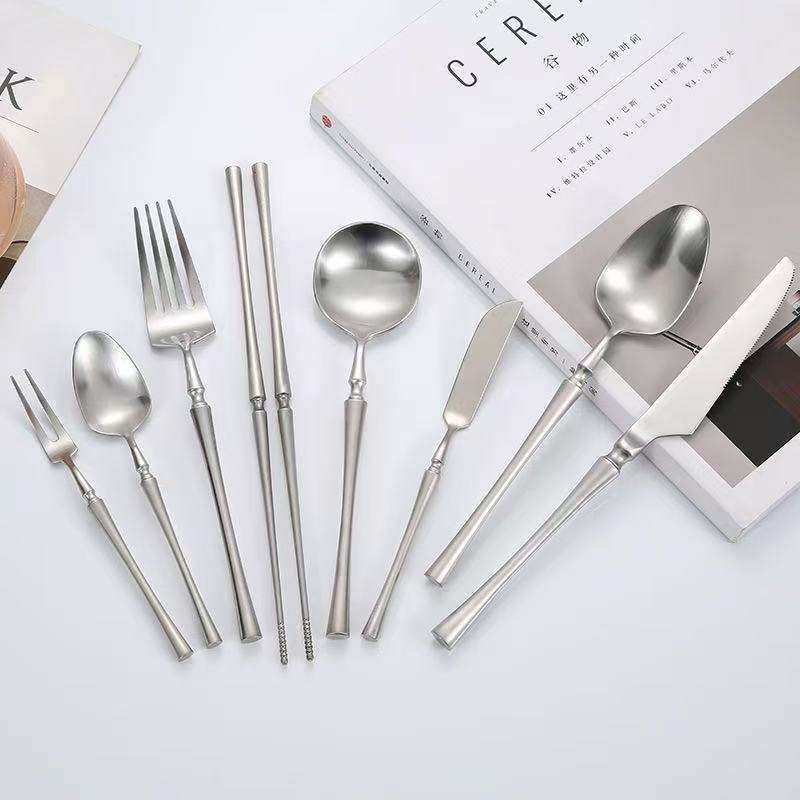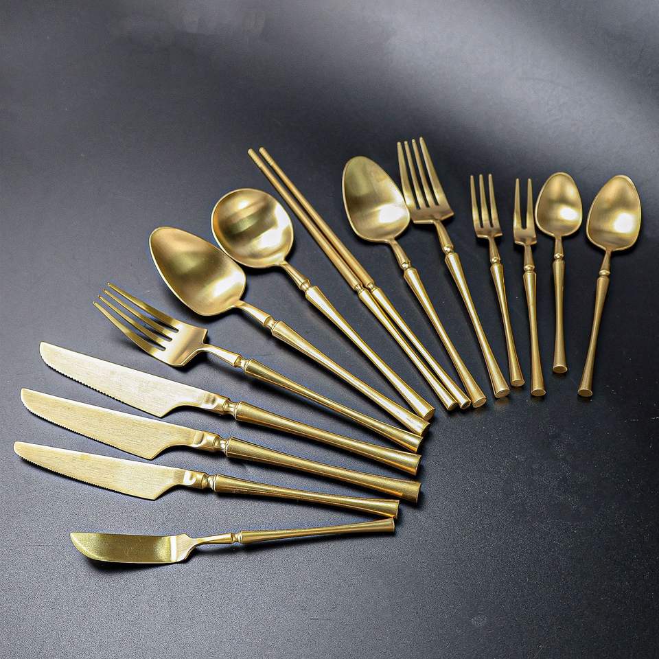 ชุดช้อนส้อมสแตนเลส Shiny-Jh สีทอง 304 สไตล์ตะวันตก มีดสเต็ก ส้อม ช้อน ชุดอาหารค่ำ