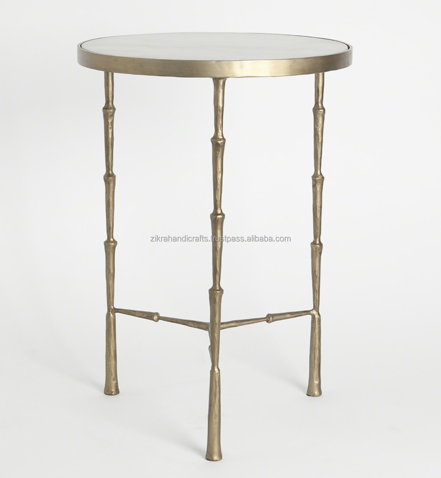การออกแบบโลหะหรูหราเฟอร์นิเจอร์ทองทาสีตกแต่งร้อนขายโต๊ะกาแฟโลหะเงาพร้อมหินอ่อนด้านบนสำหรับตกแต่งห้องนั่งเล่น