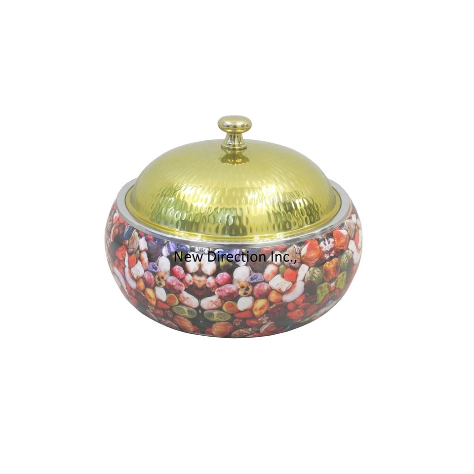 เงาชุบนิกเกิลเคลือบฉนวนหม้อเสิร์ฟหม้อร้อนขายร้อนชุด 3 งานแต่งงานอาหารเซิร์ฟเวอร์หม้อร้อน