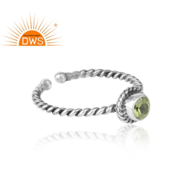 แหวนพลอยเพอริดอตเงางาม แหวนเงินแท้โบราณแบบออกซิไดซ์ วงแหวนลวดเงินบิดเกลียว ผลิตภัณฑ์เครื่องประดับเงินทำมือจากผู้ผลิต