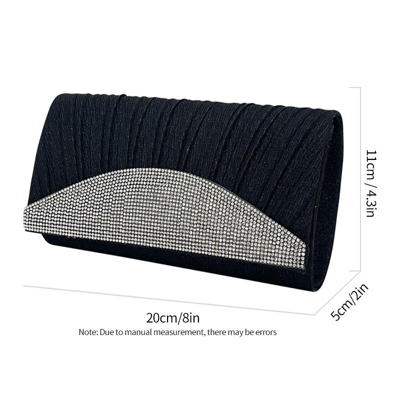 กระเป๋าถือคาดลำตัวมีจีบเงากระเป๋าคลัทช์ตอนเย็นทำด้วยมือไรน์สโตนสำหรับงานปาร์ตี้