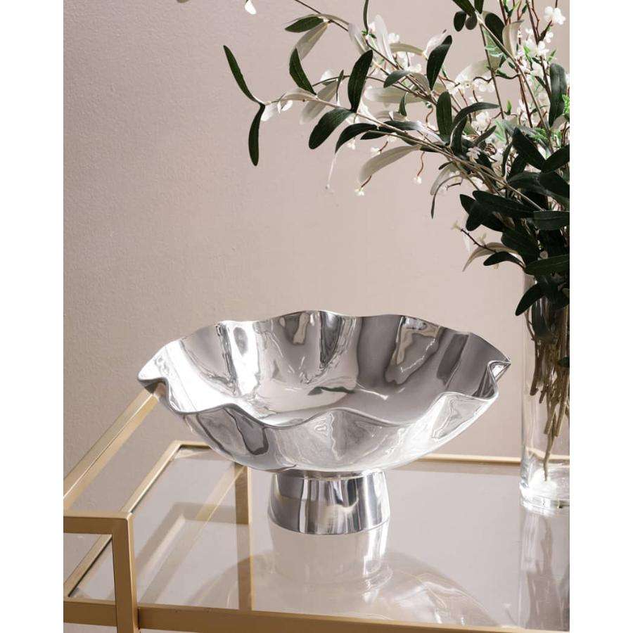 ชามผลไม้โลหะขัดเงา ลายดอกไม้ ชามหรูหรา ของตกแต่งบ้าน ของประดับโต๊ะ ชามเงินตกแต่ง ราคาถูก