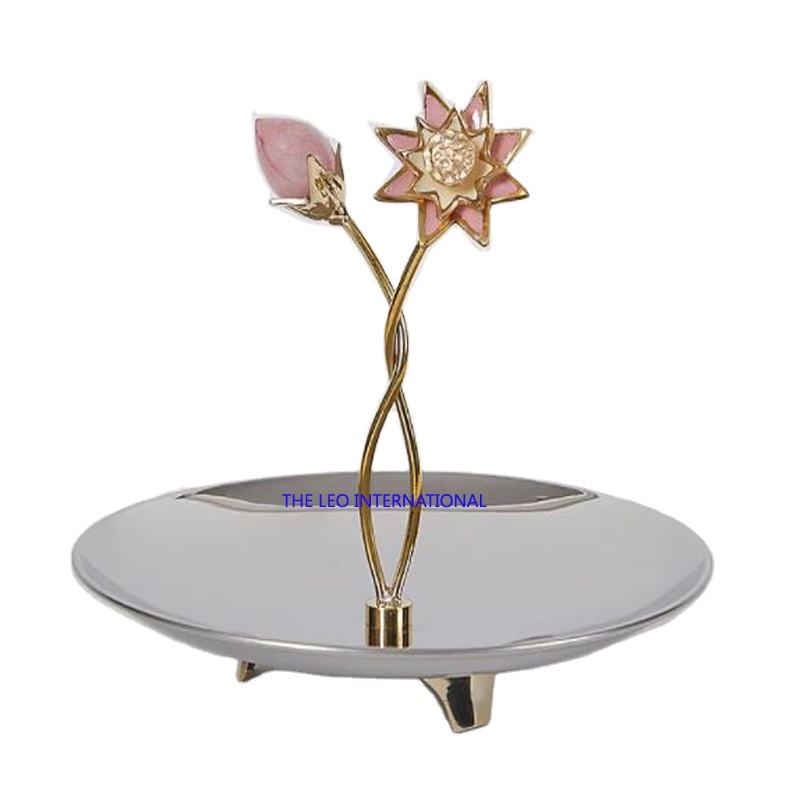 ชามสแตนเลสทำจากทองเหลืองเคลือบเงาสีทองรูปดอกกุหลาบชามตกแต่งโต๊ะทำจากโลหะขัดเงา