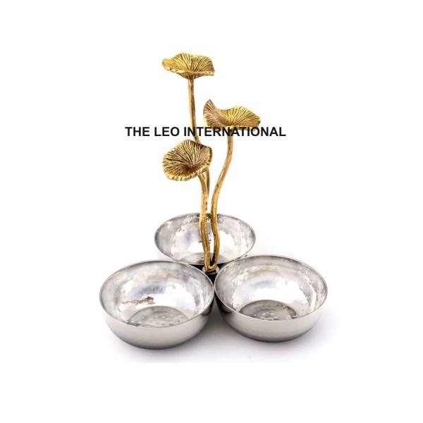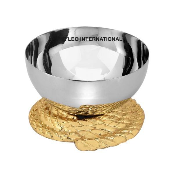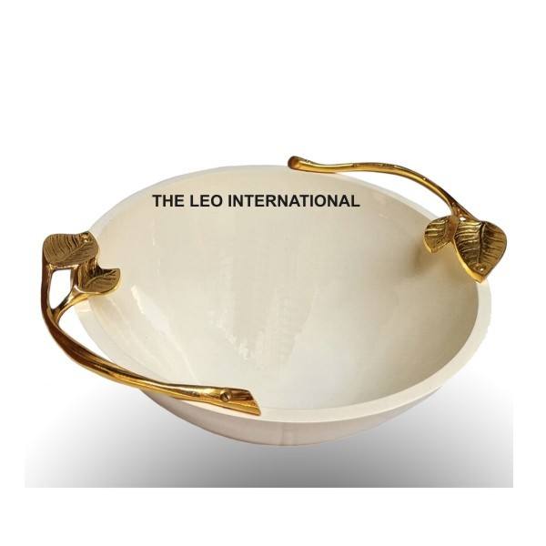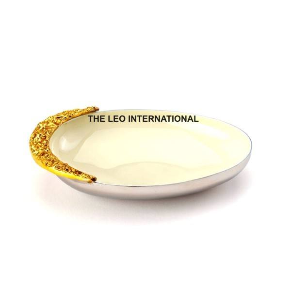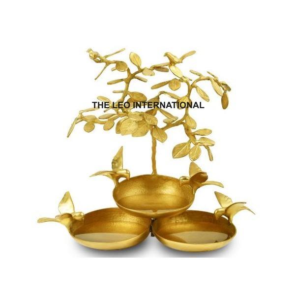 ชามตกแต่งทำจากโลหะทองเหลืองเคลือบเงาดีไซน์รูปนกบินชุบทอง
