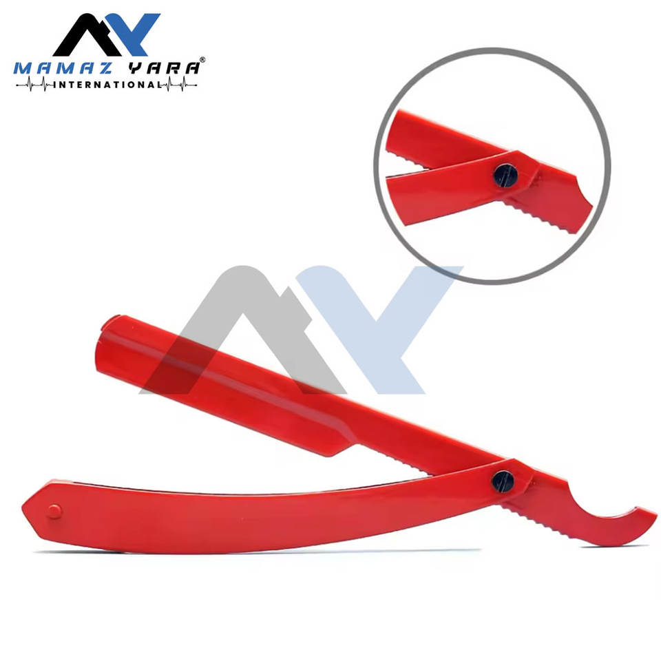 ที่ใส่มีดโกนสแตนเลสเคลือบสีแดงเงา - มีดโกนแบบตรงพับได้สำหรับช่างตัดผม ใบมีดแบบตุรกี