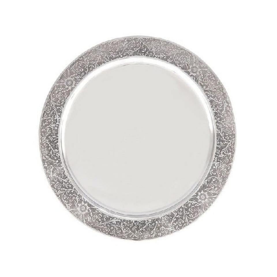 จานรองอาหารสีเงินเมทัลลิกเงางามทันสมัย พร้อมขอบลายดอกไม้สลักลวดลายประณีต สำหรับงานคริสต์มาสและปีใหม่
