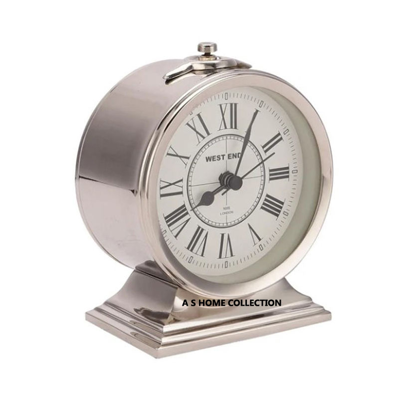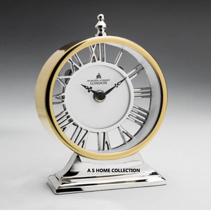 นาฬิกาตั้งโต๊ะแบบตัวเลขโรมันเงาสีเงินขัดเงาเงียบออกแบบหรูหราสำหรับห้องนั่งเล่นในราคาที่ดีที่สุด