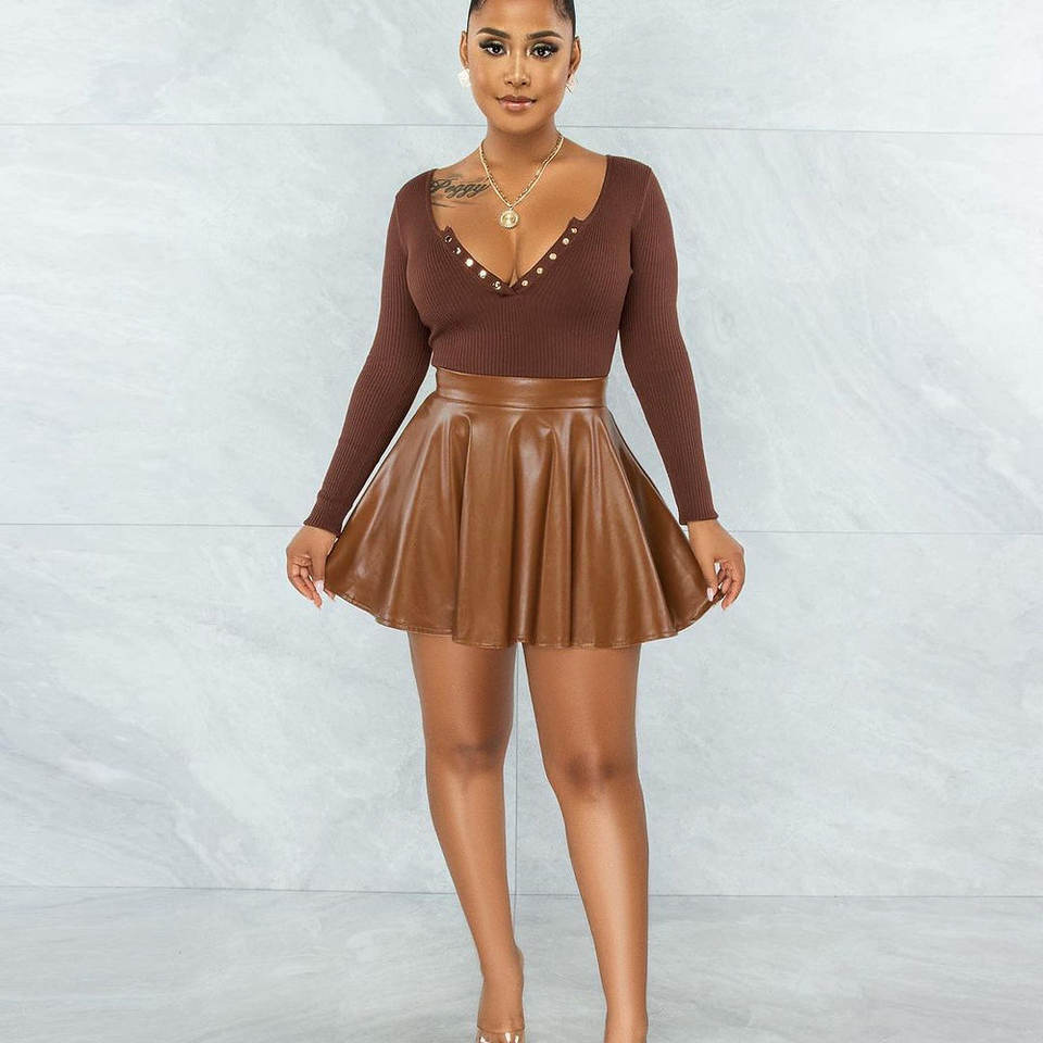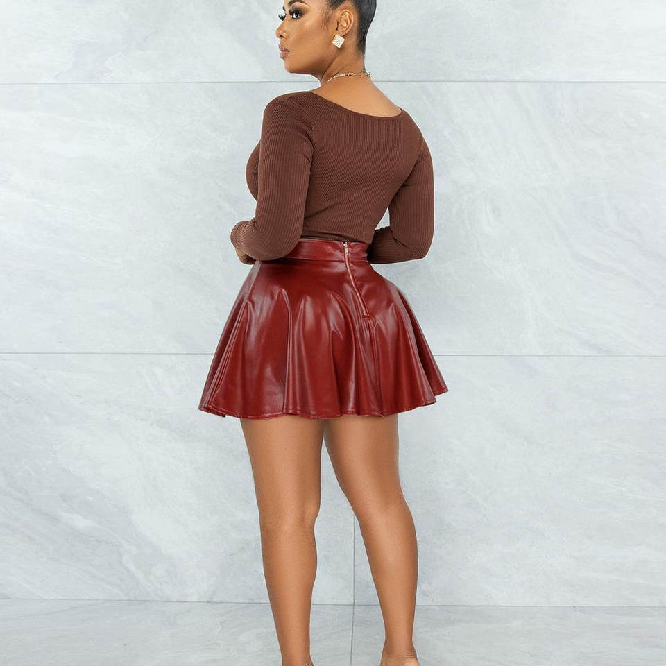 กระโปรงมินิทรงเอวีวีที วินเทจ เงางาม ไซส์ XS ผ้าหนังเทียมจีบระบาย พิมพ์ลาย ผ้ายืดเดนิมเคลือบแว็กซ์ ทรงเข้ารูป ใส่สบายสำหรับฤดูร้อน
