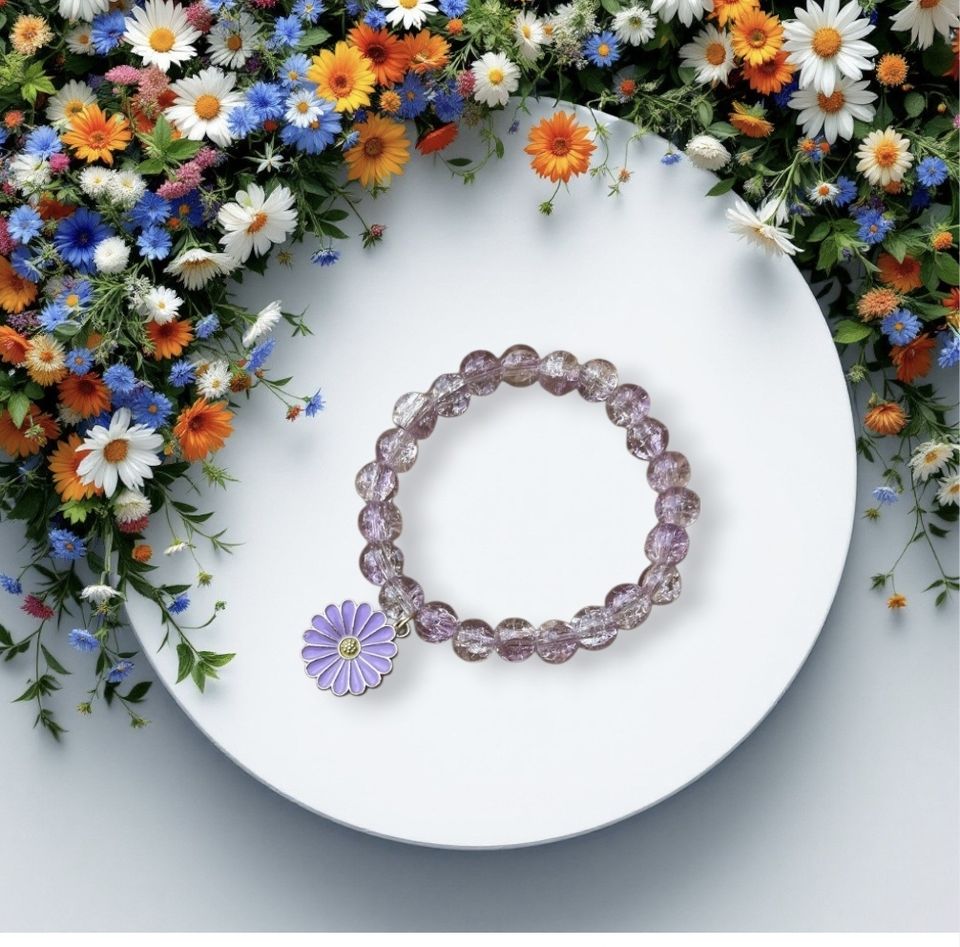 สร้อยข้อมือเสน่ห์ที่เปล่งประกายและไม่เหมือนใคร, สร้อยข้อมือลูกปัดแตก, สร้อยข้อมือดอกไม้ลูกปัดแก้วสไตล์มินิมอล