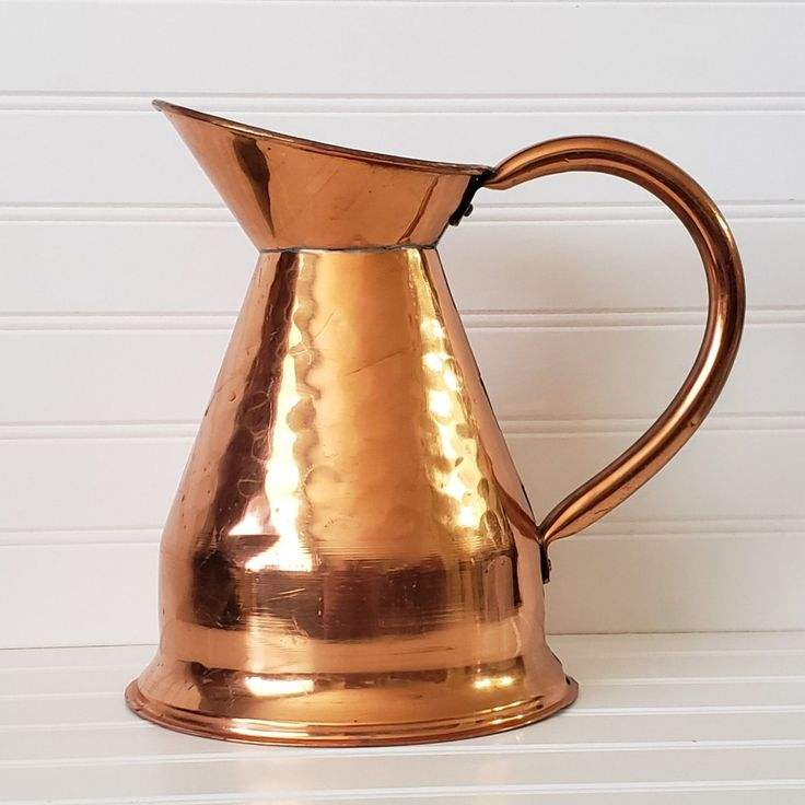 เหยือกทองแดงแวววาวที่มีรูปทรงมินิมอลและความเกี่ยวข้องทางจิตวิญญาณสำหรับการบริโภคน้ำเพื่อสุขภาพหรือการให้ของขวัญจากวัด