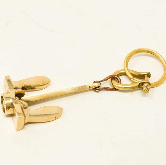 พวงกุญแจรูปสมอเรือ ทำจากทองเหลือง วินเทจ สไตล์ทะเล พร้อมเคลือบผิวแบบโบราณ