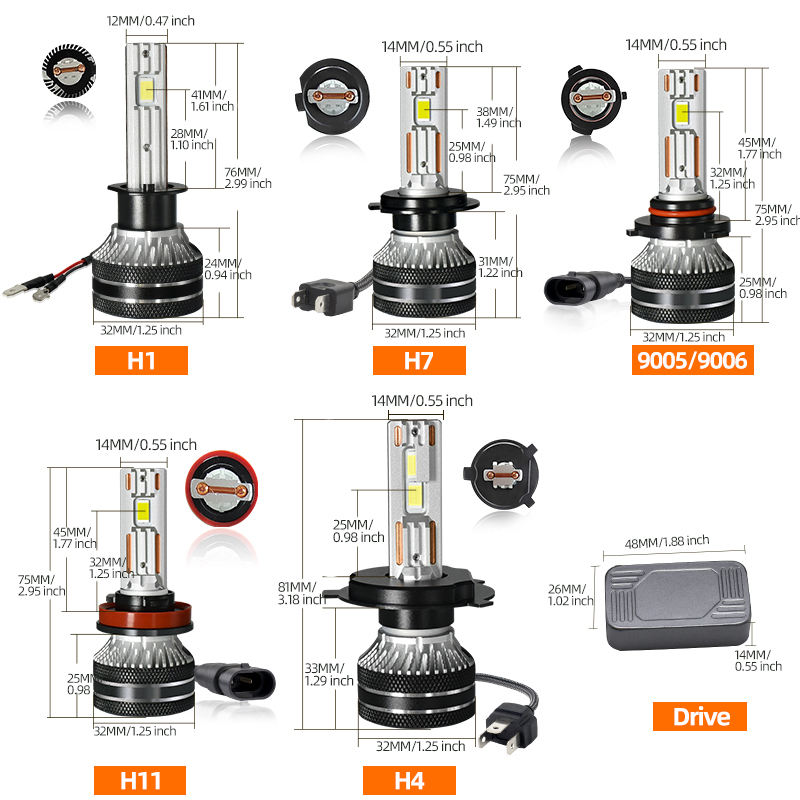 ประเภทหลอดไฟ:H1 H3 H4 H7 H11 H8 H9 9005 9006 9012 H13 9004 9007