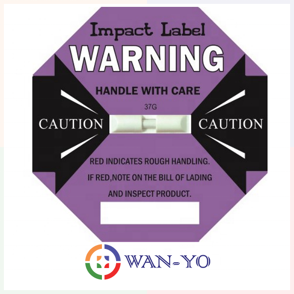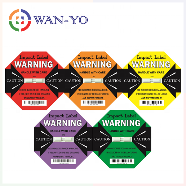 สติกเกอร์ติดฉลากกันกระแทกพร้อมบาร์โค้ดสำหรับป้องกันการขนส่งและการตรวจจับการตกกระแทก 25G-100G โดย Wan-Yo