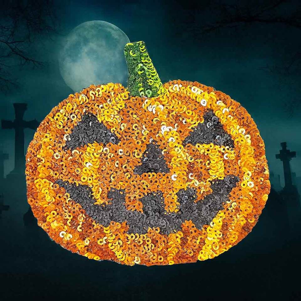 แผ่นปะเสื้อพร้อมฟักทองฮาโลวีนแบบเหล็กมีสไตล์