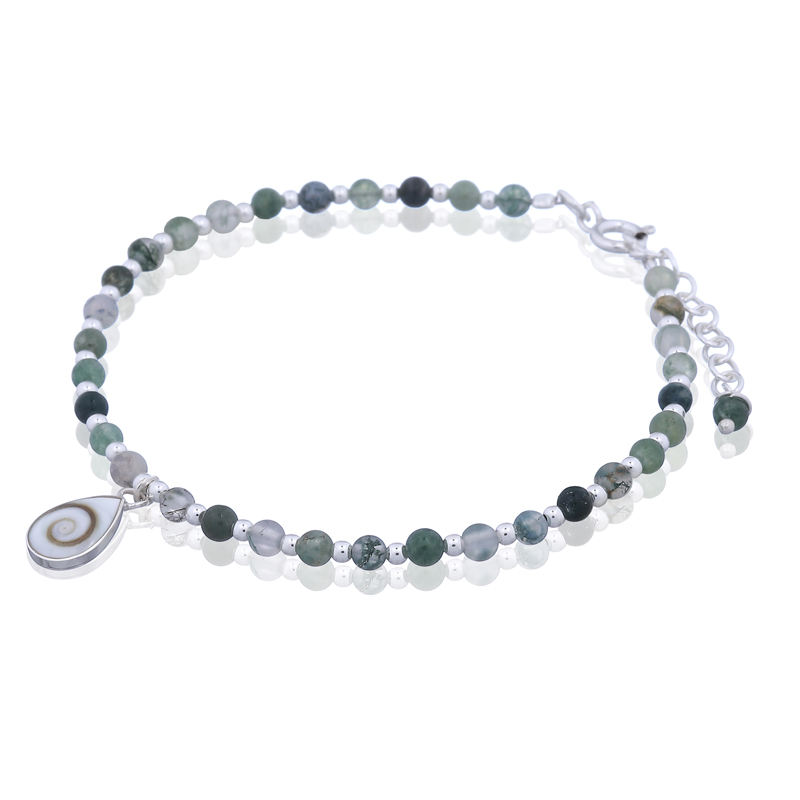 เปลือกพระศิวะวางบนโซ่โมราสร้อยข้อมือเงิน