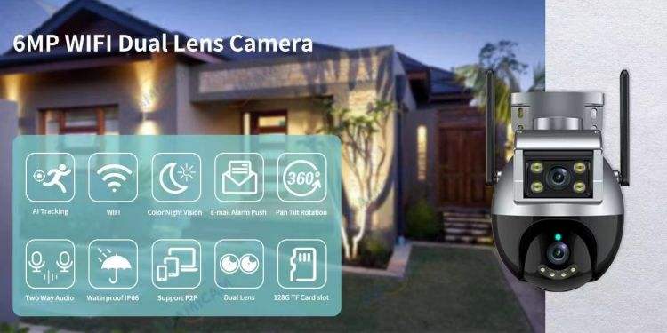 กล้องเครือข่าย PTZ เลนส์คู่ซูม5X 6MP 4MP กลางแจ้ง