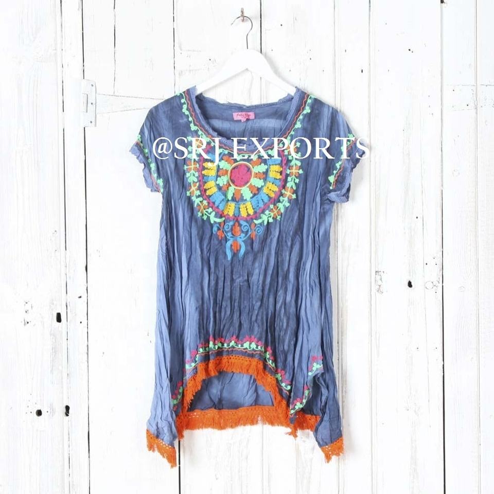 ชุดคลุมชายหาดสไตล์ชาวอินเดีย โบโฮชิค ยิปซี แต่งชายครุย ผ้าฝ้าย ลายแมนดาลาแบบเม็กซิกัน ปักลาย สำหรับผู้หญิง