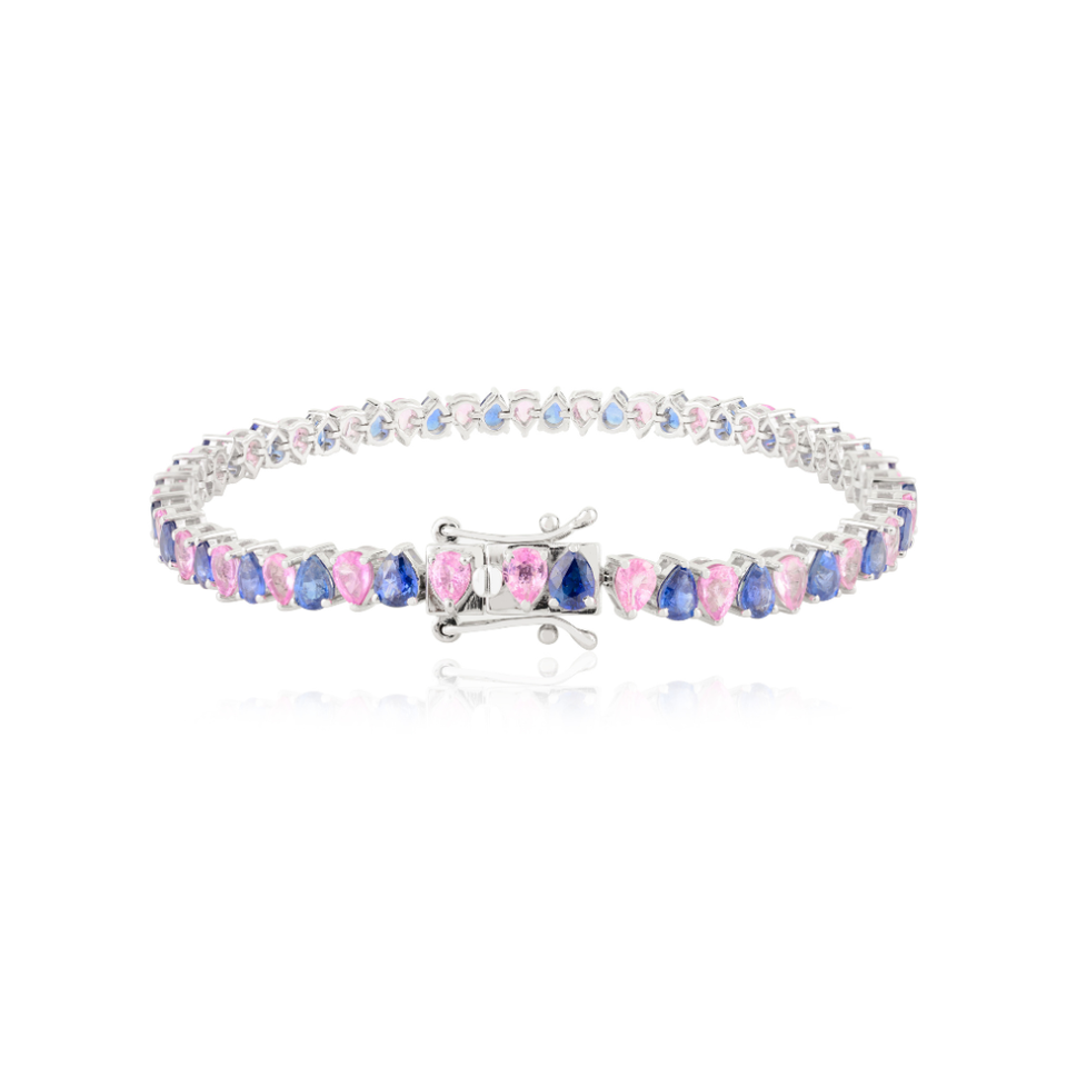 สร้อยข้อมือรูปลูกแพร์สีชมพูและฟ้าแซฟไฟร์ยอดนิยมเครื่องประดับวางซ้อนกันได้ของขวัญ K18แข็งทำด้วยมือทองคำขาว