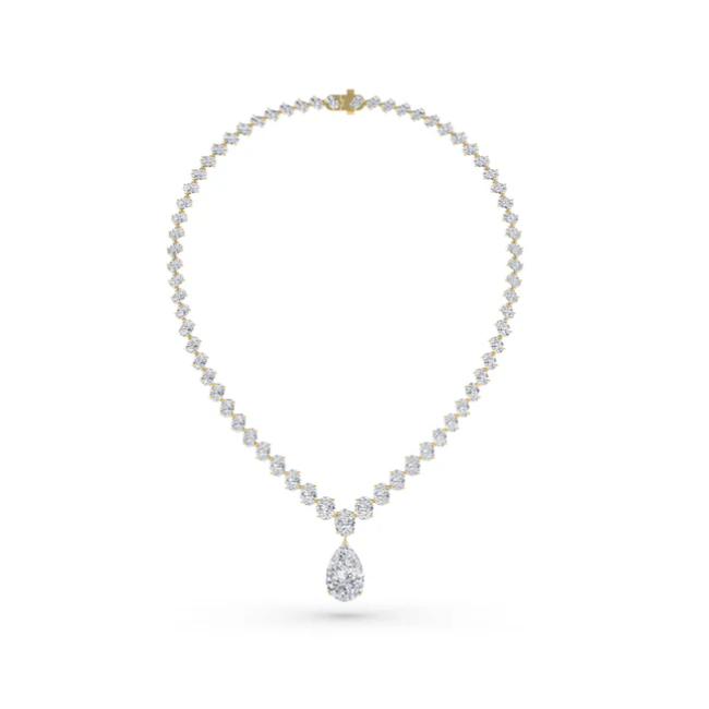 ชุดสร้อยคอเพชรรูปวงรีและลูกแพร์สำหรับผู้หญิงเหมาะสำหรับงานครบรอบแต่งงานและเป็นของขวัญ