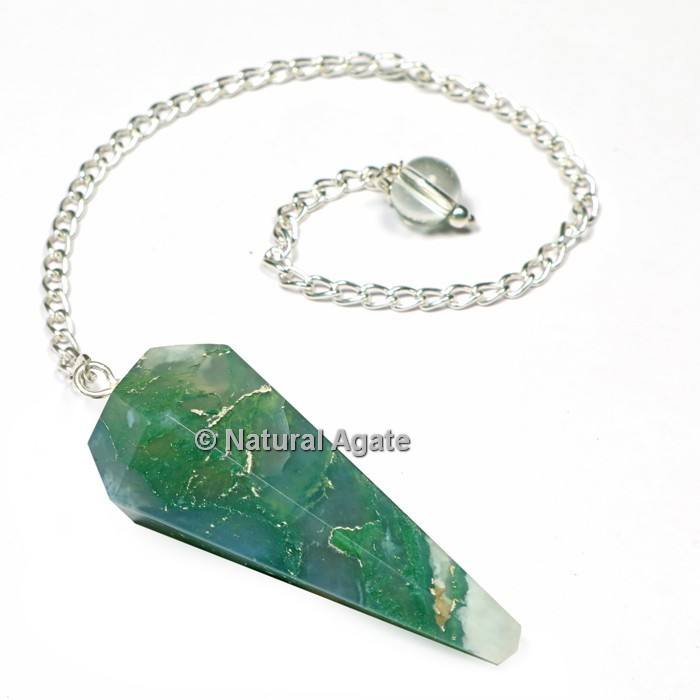 หินโมราปรับสมดุลคริสตัลจี้รูปต้นไม้6เหลี่ยมพร้อมจี้โซ่เงิน