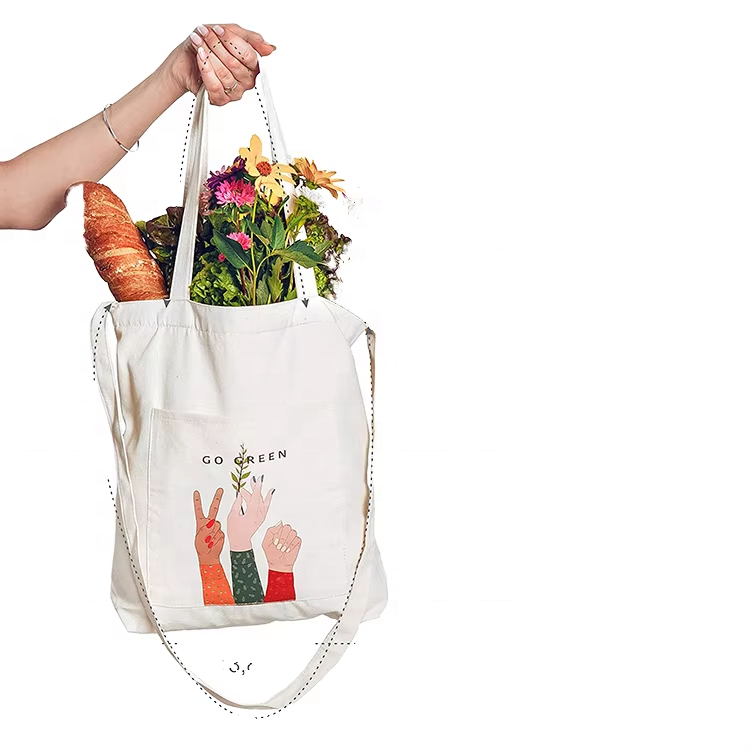 กระเป๋าผ้าฝ้ายสำหรับช้อปปิ้ง พิมพ์โลโก้จำนวนมาก กระเป๋าช้อปปิ้งออร์แกนิค กระเป๋าชายหาดแบบกำหนดเอง กระเป๋าผ้าแคนวาสพิมพ์ลายขนาดใหญ่สไตล์เกาหลี