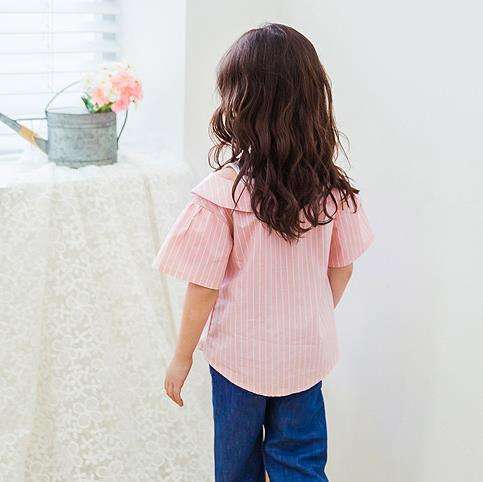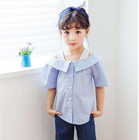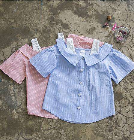 Shopping Clothes Beautiful Girl Vertical Stripe Button up Strapless T Shirt Large Quantity