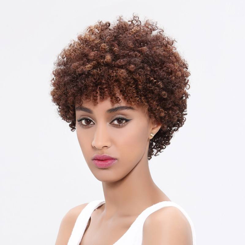 วิกผมหยักศกทรงแอฟโฟรสั้นมีผมม้า100% วิกผมบราซิลสำหรับผู้หญิงวิกผมจริงดูเป็นธรรมชาติ