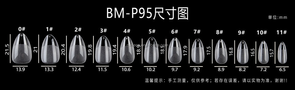 ปลายเล็บเจลใสแบบครึ่งด้านลายอัลมอนด์สำหรับต่อเล็บอะคริลิค