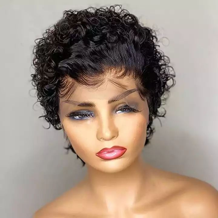 วิกผมบ๊อบสั้น,วิกผมจริงลูกไม้ด้านหน้าตรงหน้าผากวิกบ๊อบ13*4*1 T รูปร่าง8 10 12 14 16นิ้ววิกผมลูกไม้ตัดจาก Pixie