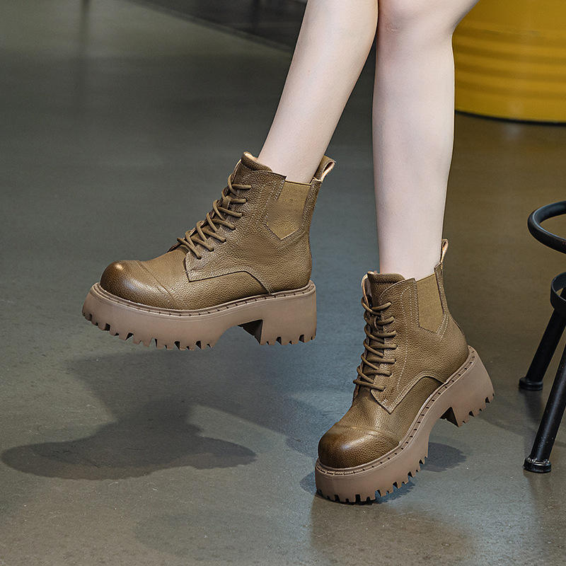 รองเท้าบูทสั้นแพลตฟอร์มยืดหยุ่นสำหรับผู้หญิงรองเท้าบูทขนาดใหญ่พิมพ์ลายเย็บปะสำหรับสุภาพสตรี