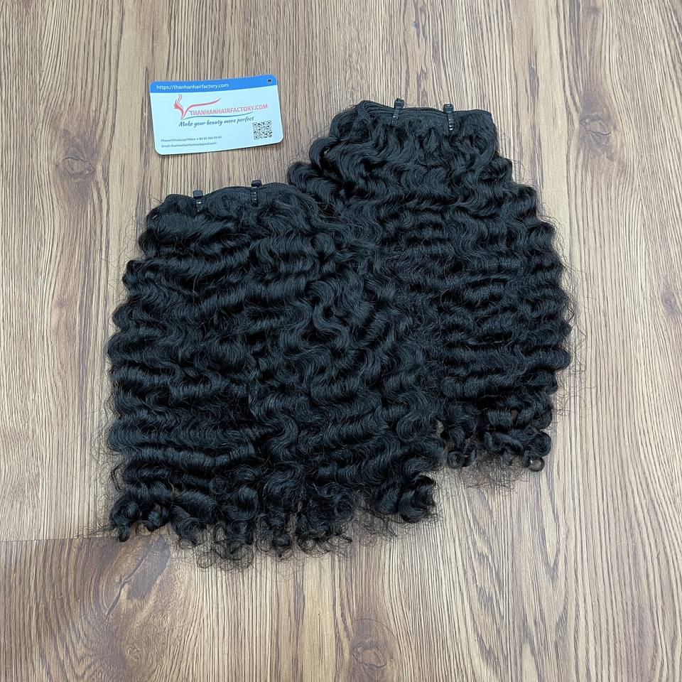 ผมต่อแบบชาวพม่าสั้นหยิกเป็นมัดผมคนเวียดนามผมต่อแบบผ้าเรมี่บริสุทธิ์100% นุ่มและเด้ง